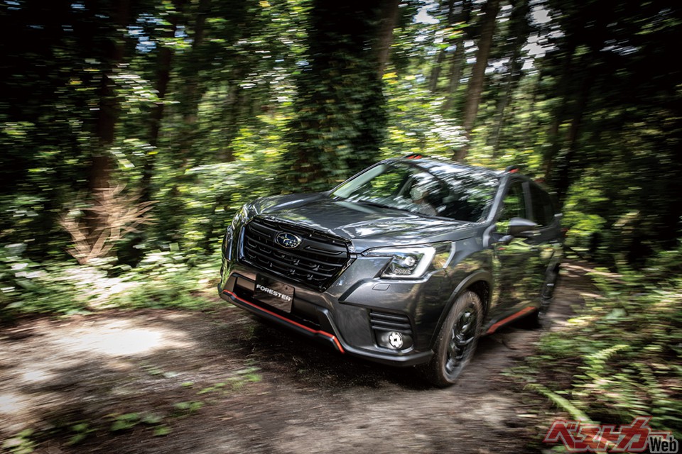 e-BOXERは燃費志向ではなく、重いフォレスターに瞬発力を与えるなど、走りを活性化。オンロードでは気持ちのいい加速感と低重心を活かしたシャープなハンドリングが魅力で、オフロードは220mmの最低地上高により悪路の登りなどで威力を発揮。
