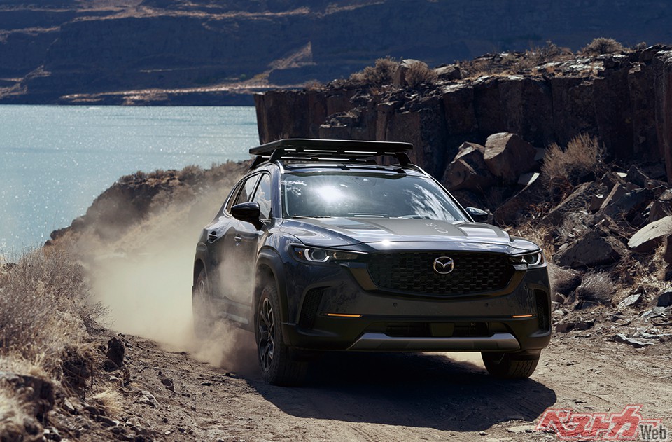 CX-50はマツダの北米専用モデルで、CX-5の兄貴分。ただし、中身はCX-30と同じスモールアーキテクチャで、ホイールベースを159mm、全幅を125mm広げてアメリカンサイズに仕立てている。