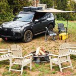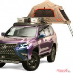 エクステリアはCBI Offroad製のフロントバンパー、フロントスキッドプレート、ミッドスキッドプレート、ロッカープロテクション、ルーフラック等を装着したほか、Yakima製のルーフトップテントやToyo MT LT 275/65R18タイヤも採用するなど、レクサスらしいラグジュアリーさをアピールしている。