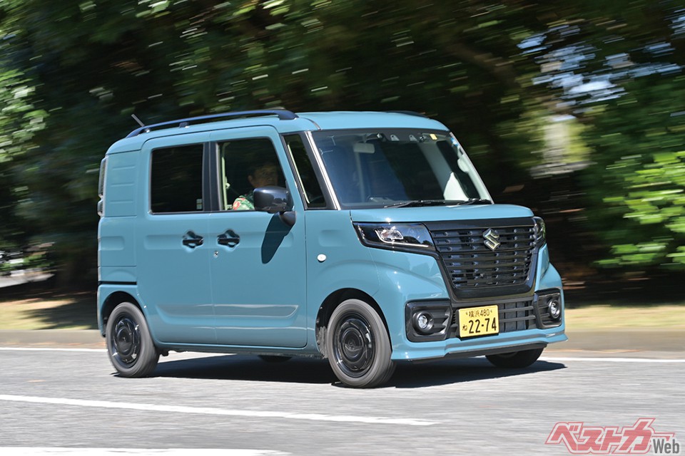 スズキによれば、最大積載量を200kgに抑えたことで、リアサスをソフトにセッティングすることができ、乗用車仕様のスペーシアと同等の乗り心地、操安性能を実現できた、ということだ。