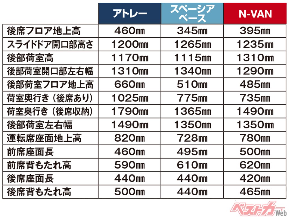 今回実際に乗って、使ってチェックしたのはスズキスペーシアベース、ホンダN-VAN、ダイハツアトレーの3台だ。