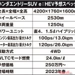 ●ホンダ エントリーSUV(e:HEV)予想スペック
