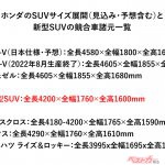 価格はe:HEVの4WDで250万円前後スタートと予想。半導体不足などの理由で発売延期となったZR-Vの影響を受けるのは必至だろうが、人気のカテゴリーだけに大ヒットも十分期待できそうだ!