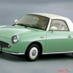 日産フィガロは「バックトゥザフューチャー」をコンセプトにデザインされ、1989年の東京モーターショーでお披露目、1991年に発売開始になったマーチベースの2ドアオープン、いわゆる「パイクカー」。当初8000台限定発売予定だったが、前評判の良さから2万台に生産量が増やされ、抽選販売となり、イギリスでもカルト的人気を誇ったクルマ。