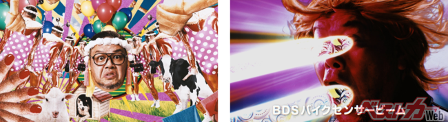 CM本編は、お笑い芸人だけでなくアーティストとしても活躍するくっきー!さんの世界観満載の仕上がりになっています。冒頭から、くっきー!さんの目や口からBDSバイクセンサーのロゴマークが飛び出します。