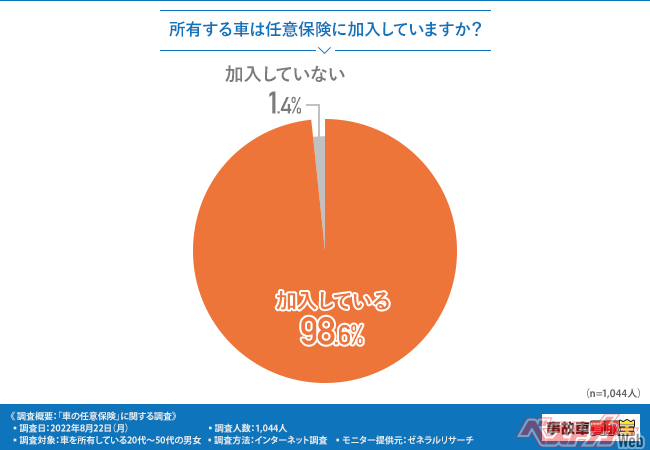 車を所有する方のほぼ100%が任意保険に加入していると回答