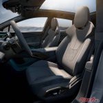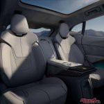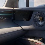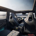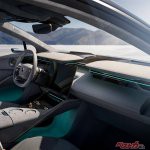 エクステリアの特徴は、あちこちに開かれた空気の通り道のような「ダクト」。フロントグリルにもボディ側面やボンネット上へと通じる穴が空いているのだが、ラジエターを持つ内燃機関車にはできない造形だ。「エヴァイヤ」にも共通するモチーフともいえるが、エアロダイナミクス的にも大きな効果を持つのだろう。いっぽうウィンドウエリアは薄く、流麗で、クーペSUV的な雰囲気に満ちている。