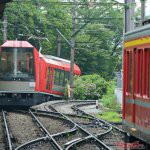急こう配に続く見どころは「スイッチバック」。線路をZ字型に敷いてジグザグに山を登っていく仕組みになっている。箱根登山鉄道には塔ノ沢~宮ノ下間に、出山信号場、大平台駅、上大平台信号場のスイッチバックが3カ所設けられている。スイッチバック地点では進行方向が変わるので、運転士と車掌が入れ替わる様子も見どころだ。なお、信号場というのは列車運転のために設置された業務用の施設であるため一般の乗客は立ち入ることができない。スイッチバックの様子を見るなら大平台駅で降りてみよう。ここでは列車の行き違いもあるので、上下2本の列車が別方向から入ってきていったん並び、再び別方向へ出発するスイッチバック駅ならではのシーンが楽しめる。
