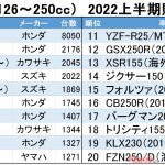 この流れは2022年も続き、さらに勢いを増すことになりそうだ。今年上半期は原付二種の販売が落ち込んだたため、全体で微増に留まったが、他のクラスでは大幅に増加。特に人気車種が一段とセールスを伸ばしているのが特徴だ。