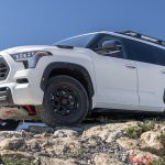 最大のトピックはセコイアTRDプロの存在。4ランナーと同様に足回りなどを専用チューンしたモデルでホイールにフロントグリルまで専用品が奢られるのだ。