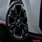 ピークパワーに関してはオーラと同じだが、NISMOらしい走りを実現するため、さらに高レスポンスな方向へと制御変更が加えられている。また車体剛性配分の最適化と専用サスペンション、タイヤにはミシュランパイロットスポーツ4が奢られ、これにより、クイックでスムーズなハンドリング特性と高い安定性を実現。これら専用部品の開発とチューニングは熟練の評価ドライバーの徹底的な走り込みによって検証が行われた結果だ。