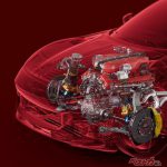 次にパワートレーンのレイアウトだ。基本的には4シーターGTで独創的な4WDシステム、4RM-Sを持つGTC4ルッソのシステム構成に似ている。エンジンを完全フロントミドとし、前方にコンパクトなPTUを置いて前輪左右を駆動、ギア比を低く設定した改良型8速DCTをリア軸に置くトランスアクスル方式とした。4RM-S evoと呼ぶ。