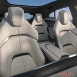 前後バンパーと両サイドは一体となってみえ、その上にアッパーボディが載るフローティング構造とした。これは視覚的に車体をダイナミックに見せるほか、エアロダイナミクスの効果も高い。特にフェンダーアーチ周辺の整流に威力を発揮する。