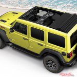 この限定車はラングラーのなかでも高いオフロード性能を誇るルビコンをベースに、ボタンひとつで開閉可能な大型の電動開閉式ソフトトップや脱着式のリアクォーターウィンドウを備えており、どんな道でも手軽にオープンエアドライブを楽しむことができる。