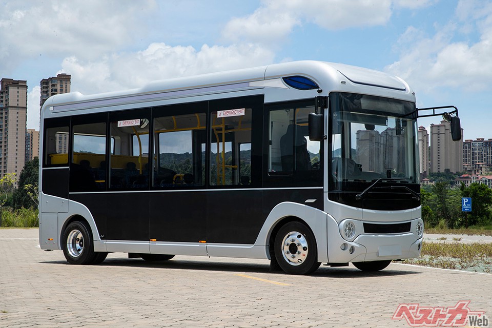 例えば、同社が手掛ける「F8」。長寿命で軽いFRP・アルミハニカムのボディを採用し、低床・フルフラットを実現したコミュニティバスなのだが、全長6990mmの29人乗りという仕様は、日野自動車のポンチョEVとガチのライバル。