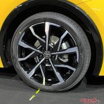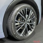 まず赤いプリウスは4WDモデルの「e FOUR」。ハイブリッドモデルについては1.8Lと2Lともに4WDモデルが用意される。今回の赤いモデルの排気量は不明だがタイヤは195/50R19の横浜ゴムブルーアースGTが装着されていた。リアにフォグランプらしきスペースも。