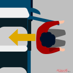 降りる時も、腰や背中を丸めた中腰スタイルで頭から出るのではなく、骨盤に手を当てて、最初は降りるドアのほうに身体を向けます。正面に対して真横になります。