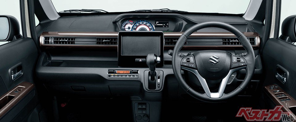 兄貴格のソリオを思わせる仕立てになっているではないですか! ブラック基調の内装にもオシャレさが漂い、大人な雰囲気。