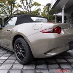 そのラインナップに、CX-5の“フィールドジャーニー”から始まったカラーで、アウトドアを連想させるような「ジルコンサンドメタリック」が追加された。色としては派手ではないのに、ロードスターというスポーツカーに塗ることによって、新たな個性が際立っている。