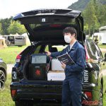 「以前もスターキャンプに来たこと、ありますよ。前回は旧型アウトランダーPHEVでしたねえ。釣りが趣味でルーフボックスには竿をいれて行くんですよ。新型はバッテリー容量が増えて、すごくいいです。4カ月でもう1000km以上走ったんですけど、実はガソリンスタンドに行ったのはまだ2回だけなんです!」