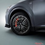 F SPORT PARTとは、レクサス各モデルのF SPORTグレード向けにTRDが開発している定評あるパーツ群のこと。新型RX向けには、空力性能を突き詰めることで爽快な走りと安心感、安定感を両立させるエアロダイナミクスパッケージと、専用開発によってより高いハンドリング性能を実現させた21インチの軽量・高剛性の鍛造アルミホイール&タイヤセットを設定した。