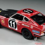 日本初、WRCで優勝したマシン。1971年のサファリラリーで見事栄冠を獲得したフェアレディZ、240Z。それを忠実に再現! サファリは耐久性とトップスピードが必要とされる高速ステージが多く、その要求に応えるため、240ZのL24エンジンは200馬力にチューニングされたものが搭載されていた。模型全長:182mm。