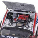それまでの市販車ベースにラリー用マシンを製作する考えを捨てたランチアが、世界で初めてWRCタイトル獲得のためだけに開発したモデルがストラトス。本格参戦の1975年から3年連続のメイクスタイトルを獲得! 模型全長:161mm。