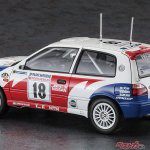 1993年WRCの開幕戦モンテカルロラリー、D.オリオールのドライブで劇的な逆転優勝を遂げたマシンを再現。舗装路が主な舞台だけに、モデルも車高を落としてワイドなスリックタイヤを装着。さらに夜間走行用ドライビングランプやコーナリングランプも装備し、迫力アリ。模型全長:192mm。