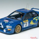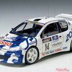 フライ・バイ・ワイヤーや6速セミオートマ・トランスミッションなど先進装備満載で1999年WRCを戦ったマシン。メカニズムやコックピットなどを精密に再現。独特のトレッドパターンが刻まれたピレリ製ターマックタイヤは、質感あふれるソリッドゴム製だ。模型全長:183.5mm。