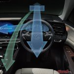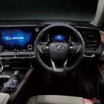 まず動力性能だが、注目はレクサスブランド初搭載となる2.4Lターボ+モーター+リア「eAxle」システム(新型クラウンで大変好評を得ているスポーツHV+AWDですね)。高トルクな2.4Lターボとモーターのフロントユニット、リヤ搭載の高出力モーター「eAxle」を組み合わせたハイブリットシステムによるDIRECT4を採用した。緻密な四輪駆動制御で、前後輪のグリップ力を最大限に活かし、車両姿勢のコントロールも行いながら、ダイレクトかつトルクフルで気持ちのいい走りを実現しているという。