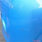 ボディの傷は、浅く白い擦り痕のような状況であれば、まずは、コンパウンドでキズの部分を磨いてみてください。ボディの塗装が削れて下地の色が出ている程度(※鋼板の地金が見えない程度)でも、タッチペンで部分補修するだけで、遠目で見たら、傷が判別できないくらいまでごまかせます。