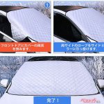 霜によるウインドウの凍結対策には、ウインドウカバー(やわらかい素材のサンシェードも使える)を利用するのが効果的だ。フロントウインドウの上から被せて左右ドアの窓枠で挟んで固定するもので、降雪時のフロントウインドウへの積雪やワイパーの貼り付きを防げるだけでなく、真夏にはサンシェードとしても役立ってくれる。