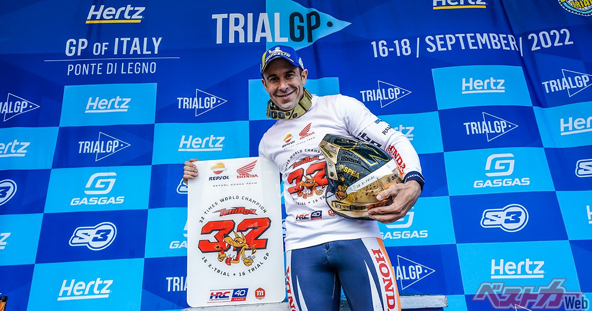 2022 FIM※1トライアル世界選手権シリーズ(以下、トライアル世界選手権)第6戦 イタリア大会の1レース目が9月17日に開催され、レプソル・ホンダ・チーム(Repsol Honda Team)のトニー・ボウ選手(スペイン 35歳)が、16年連続16回目のシリーズチャンピオンを獲得しました。