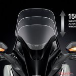 手元のボタンで高さを調整できる電動スクリーンは、ライバルのXMAXにはないフォルツァ自慢の装備。現行型と同様に継続採用されるが、稼働域は180mmから150mmに変更されるようだ。
