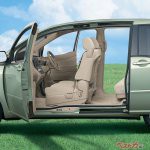 乗降性を高めるために屋根側が下部より大きく開く前部ドアの構造も初代と同様だったが、前後ドアの間にセンターピラーのないパノラマオープンドアがこの2代目から採用され、使い勝手はさらに向上していた。