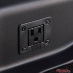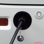 スペーシア ベースは、後席と荷室を組み合わせてリモートワーク環境が構築できたりするが、パソコン仕事や車中泊に欠かせない電源確保に役立つのが、この外部電源ユニットだ。このオプションは自宅のコンセントや発電機から最大1500Wの電力を車内に引き込むもので、リアバンパーへの電源取り込み口と車内のコンセント設置がセットとなる(5mの外部電源ケーブルも付属)。
