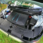 動力性能は305psのスペックを持つ電気自動車ならではの充分な速さがあり、2トン超えの重いボディをものともせず加速させる。ドライブモードを「スポーツ」に切り替えると、充分というよりもけっこうな加速感です。