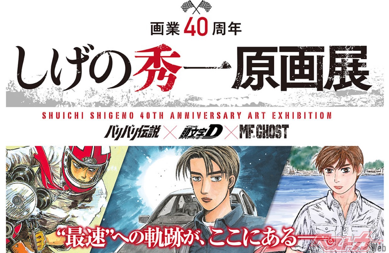 クルマ好き&バイク好きにとって「伝説」のマンガを描き続けてきた、しげの秀一先生の原画展開催が決定した。東京の池袋駅直結、西武池袋本店 別館2階=西武ギャラリーにて11/18(金)~30(水)午前10時~午後8時。『バリ伝』も! 『イニD』も!! 『MF』も!!!! 原画を見ると、異次元のスピード表現がよみがえるとともに、夢中で読んでいた「あの頃」と、「いま」とが繋がる感覚が味わえるぞ!!(大ファンなのでやや興奮気味)