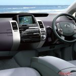2003年~2011年まで販売された2代目プリウスは、初代の4ドアセダンから空力特性に優れた5ドアハッチバックへと外観デザインを変更。このスタイルは現行型でも継承されている。また、室内空間の拡大や走行性能を向上させるため、全幅は1,725mmと拡大され、3ナンバーサイズへと拡大された。