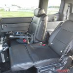 このスパーダの2列目は2座席のみのキャプテンシート仕様。そのシートにはなんと「オットマン」まであるタイプで、通常座る時に使用してくつろげるだけでなく、車中泊でも快適に過ごせるのだ。このオットマンをシートと同じ高さまであげれば、下に収納スペースが生まれ便利。機材をとなりの座席にポンと置き、靴下まで脱いでしまって思い切りシートを倒して超リラックス。