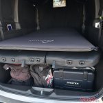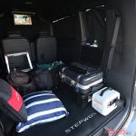 ベンチシートの8人乗りタイプではなく、キャプテンシートの7人乗りでもこんな車中泊が可能だったとは……知らなかった。しかもこの状態でラゲッジ下部のスペースにも荷物がたっぷり収納可能なのも便利だ。