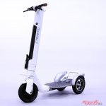 前1輪、後2輪の電動3輪モビリティだが、さすがはホンダ系の企業だね、と感心させられるのは、ハンドルから手を離しても、足を乗せて直立したまま静止できること。独自のバランスアシスト機構を備え、安定した走りに加え、転びづらいのだ。