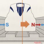 リニアというと「浮いて走る」イメージ。実際、このL0系は案内軌道上を約10㎝浮いて走っているのだが、停車時に接地しているタイヤで走り出して速度が上昇することで浮上するのではなく、タイヤが格納されることでむしろ沈み込んで10㎝のクリアランスでの浮上走行に切り替わるのだ。この浮上力は車両側の超電導磁石が高速で通過した際に、側壁側の浮上案内コイルに電流が流れる原理により生じるため、外部からの電源供給の必要なく浮上力を発する。つまり、停電になっても一定以上の速度があれば浮上力が突然失われることはないという安全設計。停電時は惰力で浮上走行し続け、一定の速度以下になった時点でタイヤが接地して安全に停車できるのだ。このゴムタイヤは万が一の緊急事態に500km/hのトップスピードから接地させても大丈夫な設計だという。詳細は明かされなかったが、航空機用タイヤの技術などが応用されているのであろう。