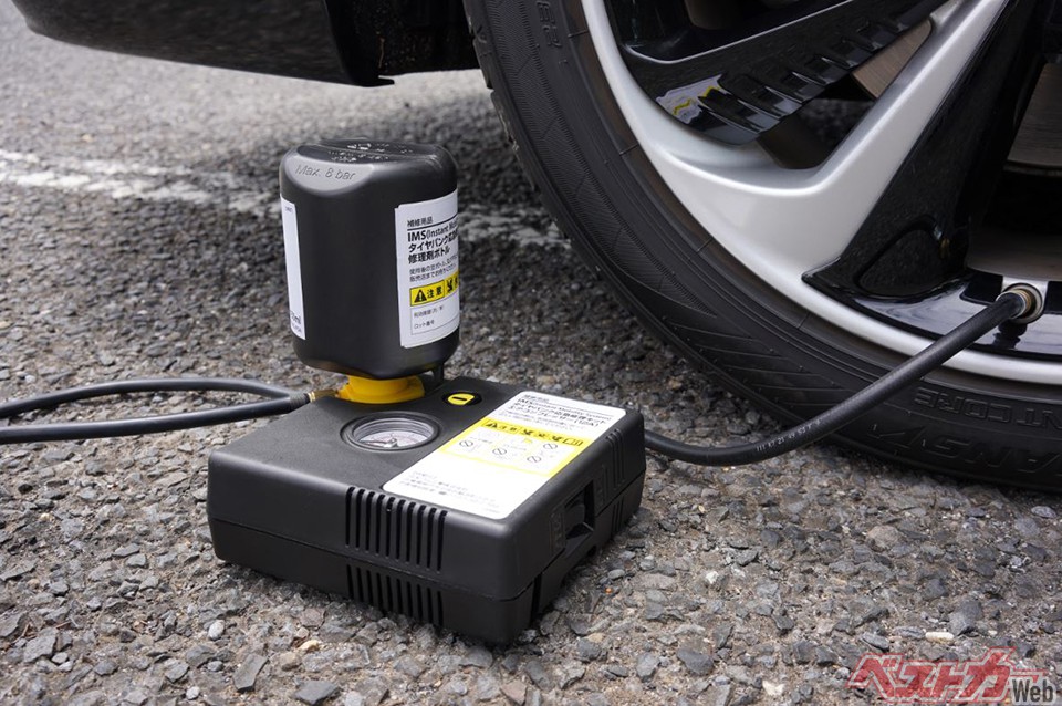 もしタイヤがパンクやバーストしてしまい、スペアタイヤを搭載していない場合は、パンク修理剤を使うか、ロードサービスを呼ぶしかない。
