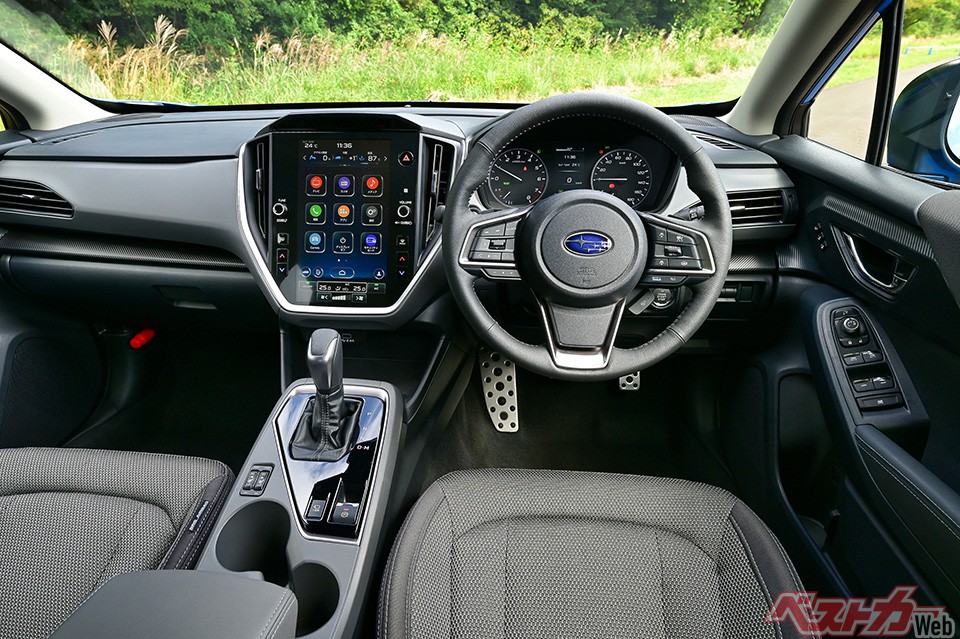 まず驚くのはコックピットのデザイン。レヴォーグと同じ11.6インチのセンターディスプレイが採用され、インテリアを含めすべてが一新されて高級感が格段アップ。