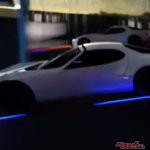 公開された写真のタイトルは「ビジョンスタディモデル」としか書かれておらず、説明は一切ない。動画を見ていくと、後半部分で、正面の走り、夜景の街並みを走る様子、女の子が持つスマホのなかに白いスポーツカーが映っている。