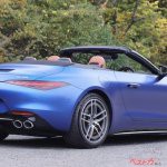 また、グリップの高いミシュランのパイロットスポーツ4S(フロント265/40R20、リア295/35R20)の威力は絶大で、コーナリングやブレーキングもやりやすく、試乗コースであったターンパイクでは、実に気持ちの良い走りを堪能できた。日が陰りやや寒い時間帯であったが、オープン走行であっても風の巻き込み自体は少なく、また首の真後ろ付近に温風が当たるようになっていたので、寒がりな筆者としては非常に助かった。