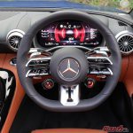 AMGのステアリングホイールの向こう側には、昨今のメルセデス共通である派手なデジタルメーターと、インパネ中央には縦型ディスプレイが並ぶが、3連のエアコン吹出口や横幅のあるセンターコンソールなどは、伝統的なロードスターのデザインが踏襲されている印象だ。