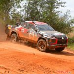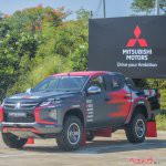 参戦車両はタイ仕様の『トライトン』(T1仕様=改造クロスカントリー車両)の3台体制(これがむちゃくちゃカッコいい)。出場台数は、二輪部門21台、サイドカー部門2台、四輪部門32台、トラック部門1台の計56台。急勾配あり、泥道あり、渡河(!??)ありの難コースを、トライトンが駆け抜ける。