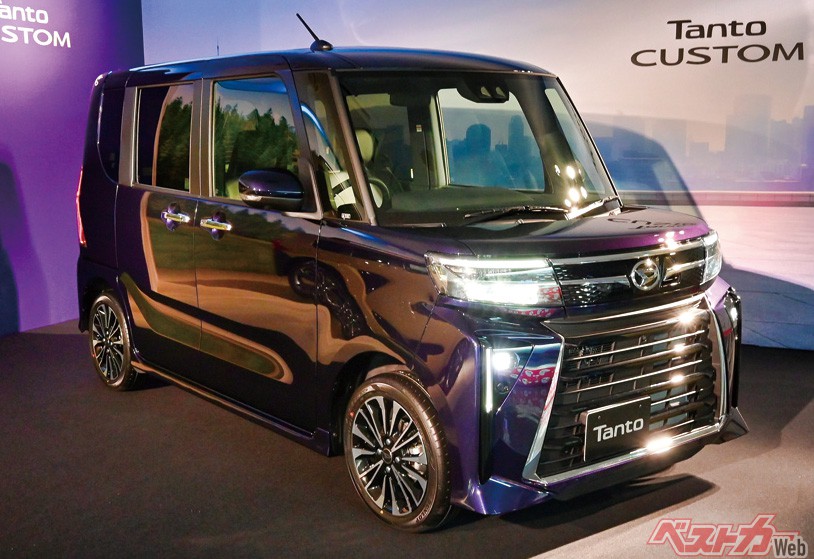 今回発表されたタントのマイナーチェンジにはノーマルのタント、タントファンクロス、そして迫力あるデザインが強烈なタントカスタムも同時発表された。